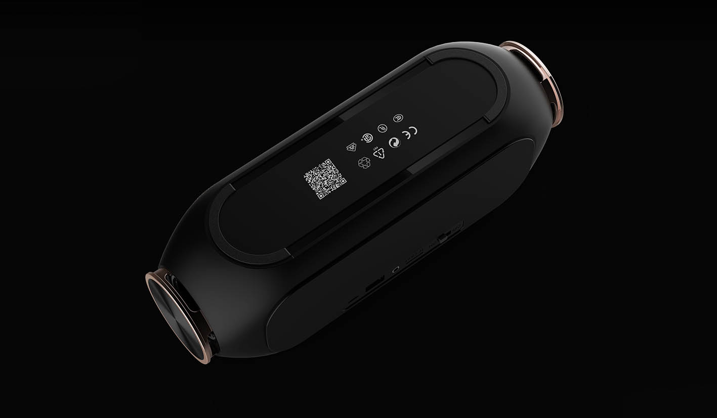 此款藍(lán)牙音(yīn)箱的(de)設計(jì)理(lǐ)念是(shì)“大(dà)嘴猴”,簡約的(de)造型曲線,幾何形的(de)造型元素很(hěn)好(hǎo)的(de)闡釋了(le←)此款雙喇叭藍(lán)牙音(yīn)箱的(de)氣質。頂部超大(dà)的(de)觸摸控制(zhì)區(qū)域≈,明(míng)确的(de)操控功能(néng)分(fēn)區(qū),帶給消費(fèi)者很(hěn±)好(hǎo)的(de)操控體(tǐ)驗感。